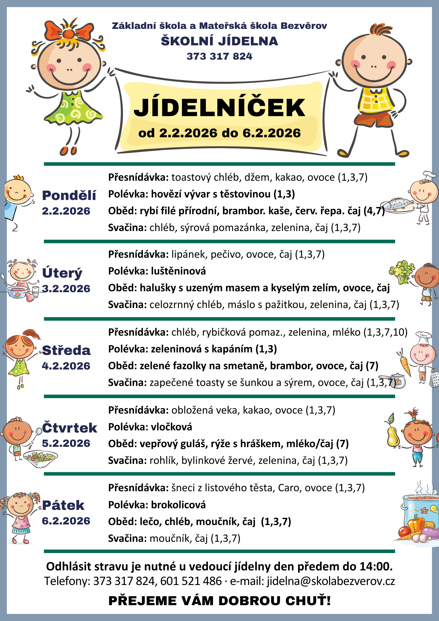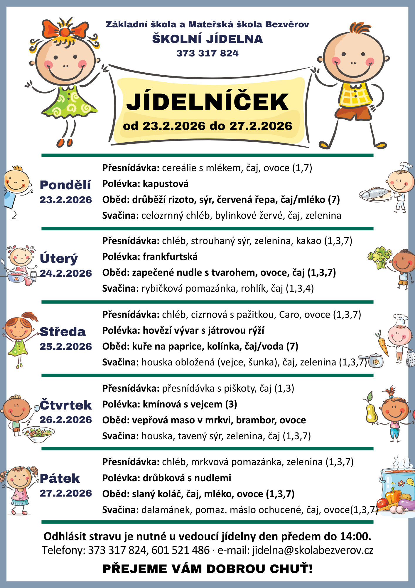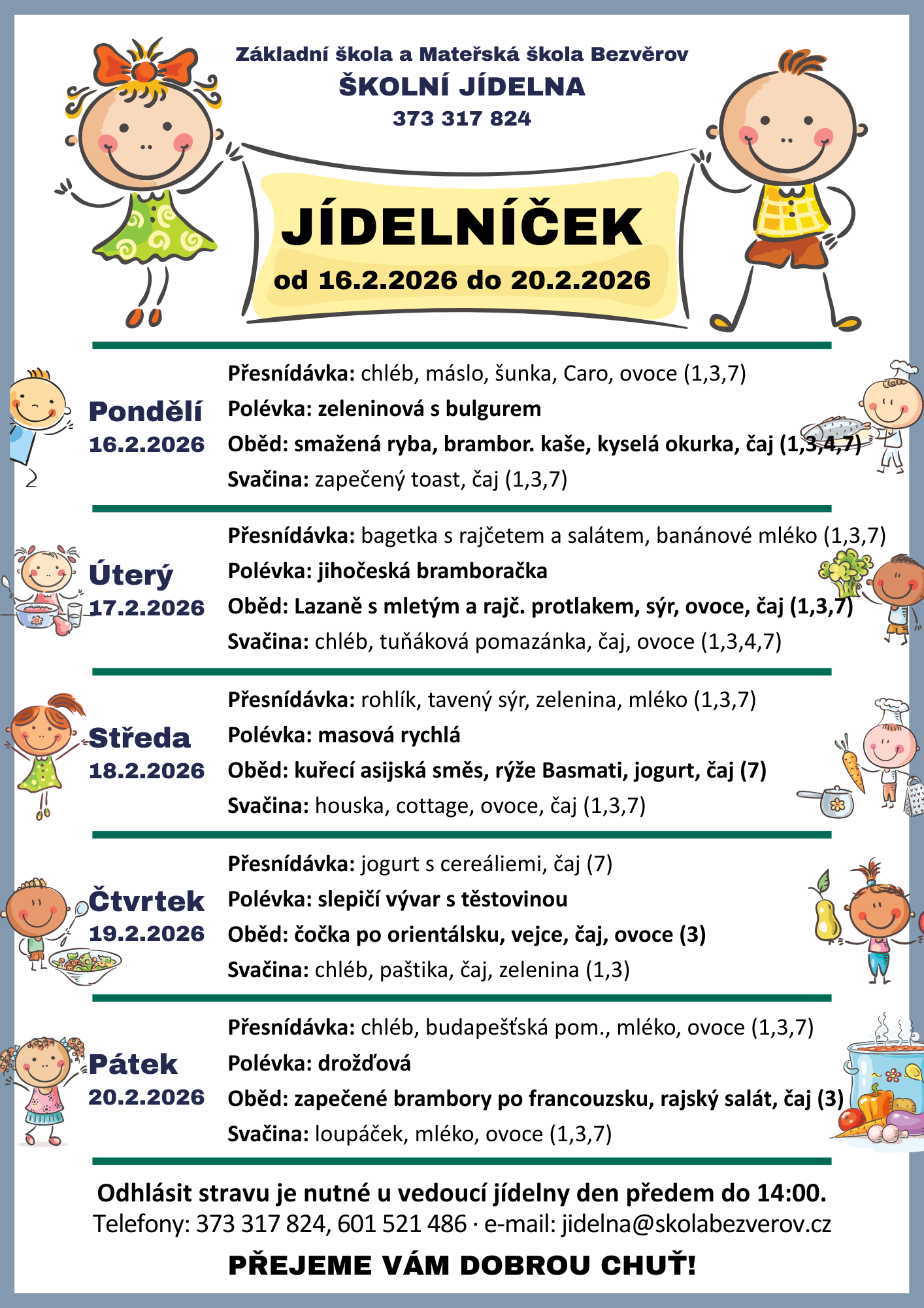 V týdnu od 24.2. do 28.2.2025 školní jídelna nevaří - jsou jarní prázdniny!